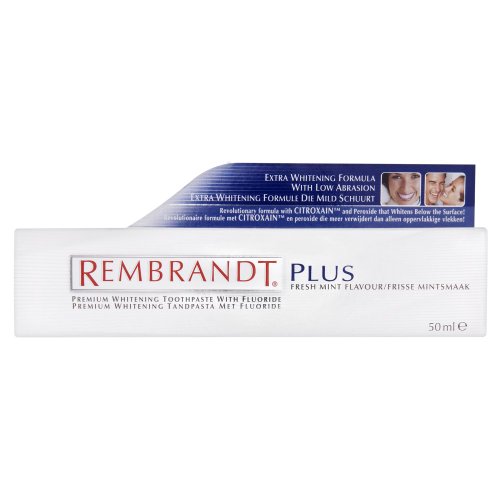 50ml - Dentifrice blanchissant. REMBRANDT PLUS est un dentifrice extra blanchissant. Il contient un peu moins de 0,1% de peroxyde qui lui permet de blanchir vos dents